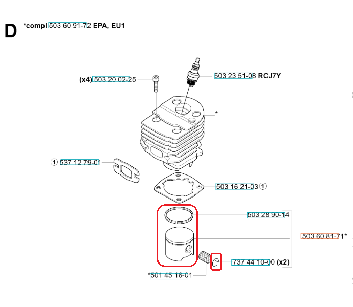 Oryginalny zespół tłoka do pilarek spalinowych marki Husqvarna. Numer katalogowy: 503608171.