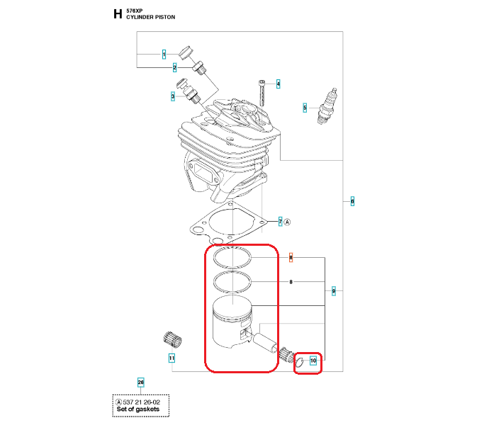 Tłok kompletny, zespół tłoka pilarki Husqvarna 576XP/XPG