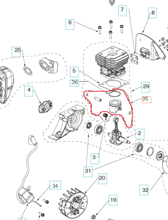 Tłok dedykowany do wykaszarek i podkaszarek Husqvarna. Produkt występuje pod numerem katalogowym: 590553502. Dokładne umiejscowienie tłoka widoczne na załączonym schemacie. Producent Husqvarna.