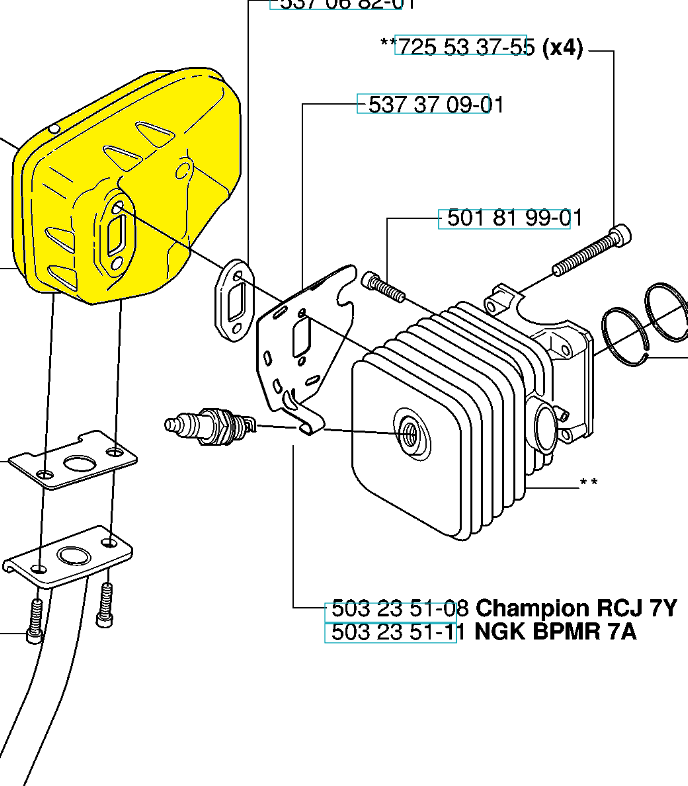 Tłumik dedykowany do nożyc Husqvarna. Produkt występuje pod numerem katalogowym: 544232402. Dokładne umiejscowienie tłumika widoczne na załączonym schemacie. Producent Husqvarna.