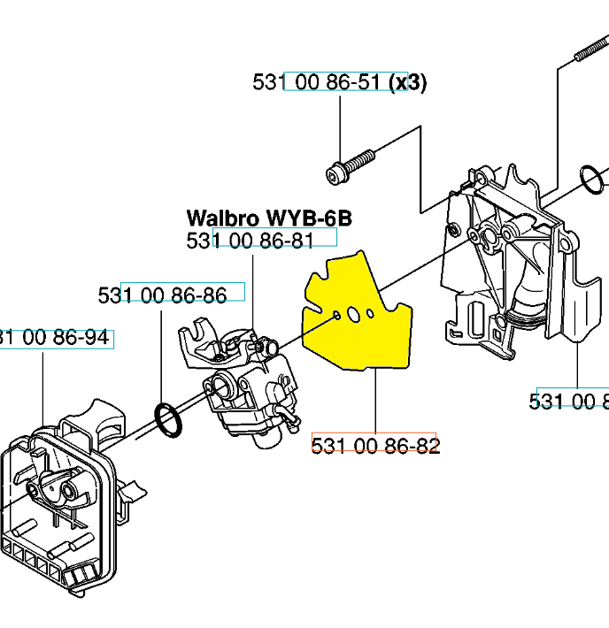 Uszczelka gaźnika dedykowana do nożyc, wykaszarek i podkaszarek Husqvarna. Produkt występuje pod numerem katalogowym: 531008682. Dokładne umiejscowienie uszczelki widoczne na załączonym schemacie. Producent Husqvarna.