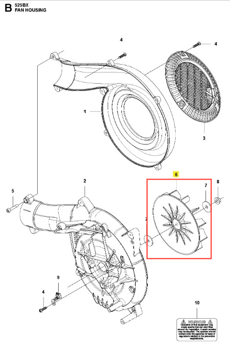 Wentylator dmuchawy 525BX Husqvarna - wysokiej jakości oryginalna część producenta Husqvarna. Aktualny numer katalogowy produktu: 585625301. Szczegóły montażu dostępne w załączonym schemacie. Poniżej znajduje się lista modeli, w których ten element jest wykorzystywany.