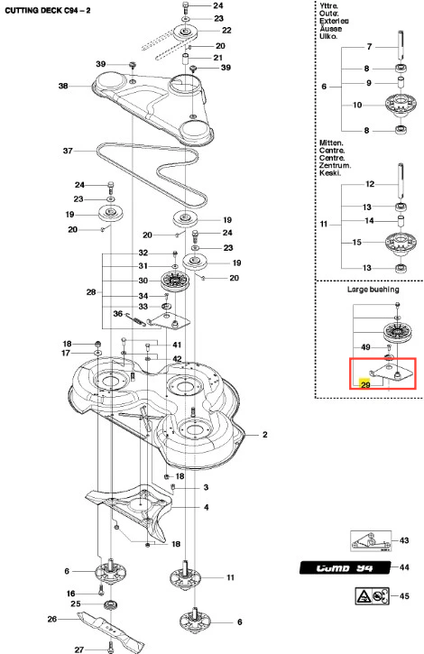 Wspornik ridera R213C Husqvarna - wysokiej jakości oryginalna część producenta Husqvarna. Aktualny numer katalogowy produktu: 506797101. Szczegóły montażu dostępne w załączonym schemacie. Poniżej znajduje się lista modeli, w których ten element jest również wykorzystywany.