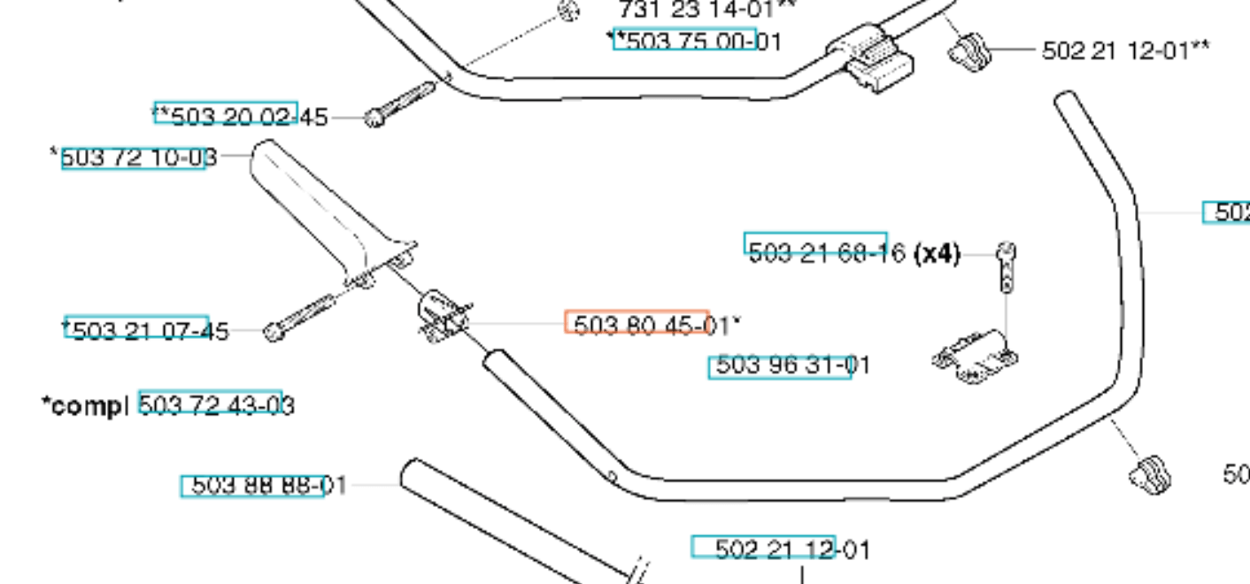 Wspornik dedykowany do podkaszarek i wykaszarek Husqvarna i Jonsered. Produkt występuje pod numerem katalogowym: 503804501. Dokładne umiejscowienie wspornika widoczne na załączonym schemacie. Producent Husqvarna.