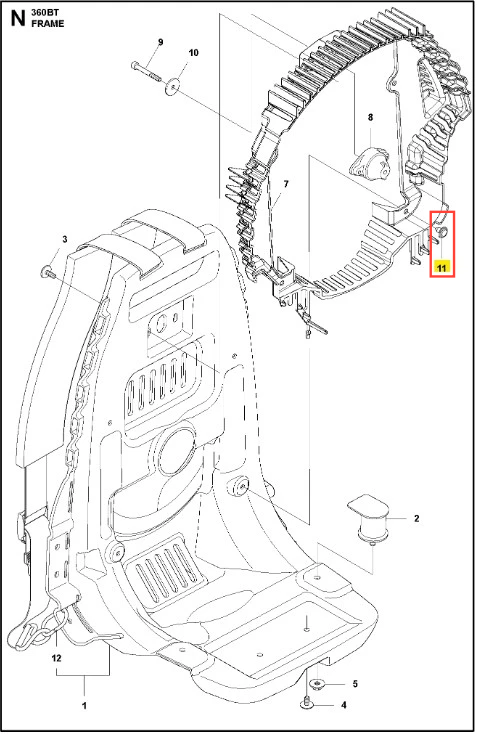 Zacisk dmuchawy 360BT Husqvarna - wysokiej jakości oryginalna część producenta Husqvarna. Aktualny numer katalogowy produktu: 526243901. Szczegóły montażu dostępne w załączonym schemacie. Poniżej znajduje się lista modeli, w których ten element jest wykorzystywany.
