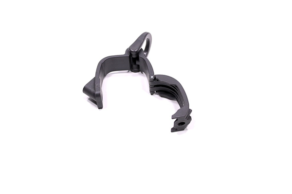 Zaczep składa się z zacisku, który jest podzielony na dwie części oraz pętli (wieszaka) do którego mocowane są szelki.