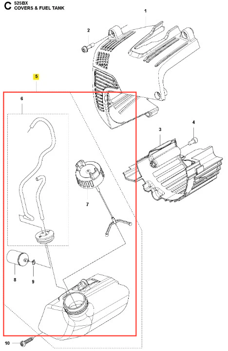 Zbiornik paliwa. kompl. dmuchawy 525BX Husqvarna - wysokiej jakości oryginalna część producenta Husqvarna. Aktualny numer katalogowy produktu: 585635101. Szczegóły montażu dostępne w załączonym schemacie. Poniżej znajduje się lista modeli, w których ten element jest wykorzystywany.