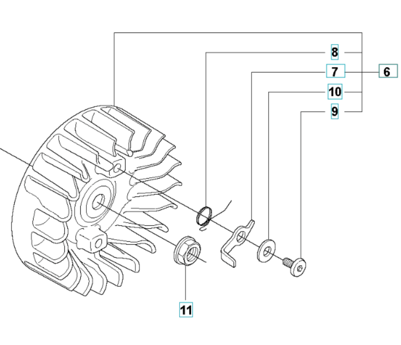 Wysokiej jakości zespół koła zamachowego, dedykowany do kos spalinowych Jonsered i Husqvarna. Oryginalny numer katalogowy produktu: 537240502. Producent: Husqvarna.
