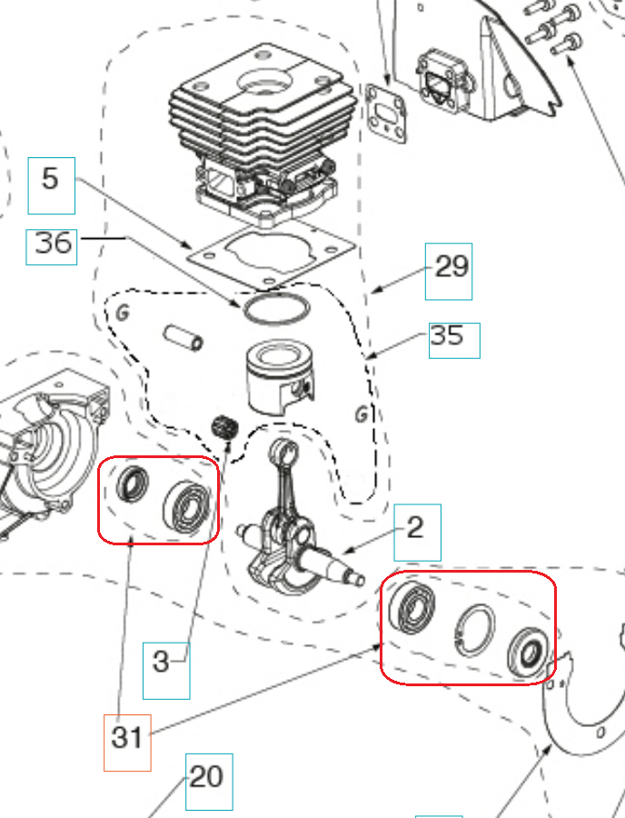 Zestaw uszczelniaczy wału korbowego dedykowany do wykaszarek i podkaszarek Husqvarna. Produkt występuje pod numerem katalogowym: 501856201. Dokładne wskazanie uszczelniaczy widoczne na załączonym schemacie. Producent Husqvarna.