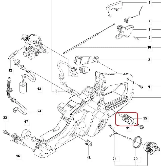 Amortyzator górny zbiornika paliwa pilarki.
