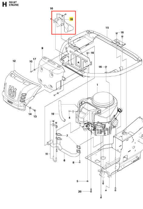 Oryginalna część Husqvarna – deflektor ciepła ridera R316T Husqvarna. Wykonana z wysokiej jakości materiałów, zapewnia niezawodność działania. Numer katalogowy: 579314901. Szczegóły dotyczące montażu zawarte są w schemacie. Poniżej znajduje się lista modeli, w których ten element jest również wykorzystywany.