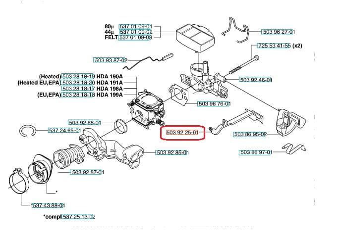 Producent Husqvarna, nr katalogowy: 503922501, 5039225-01, 503 92 25-01. Dźwignia ssania ma za zadanie zamknąć przepływ powietrza w gaźniku.
