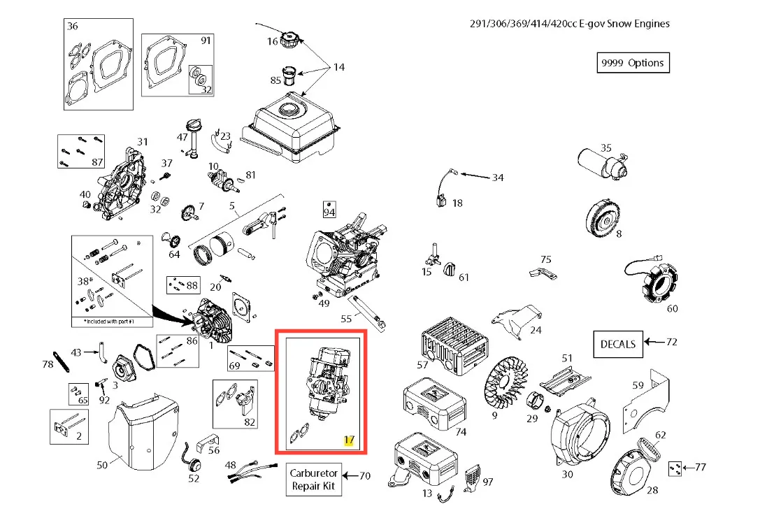 Gaźnik odśnieżarki ST 424 Husqvarna - oryginalna część producenta, wykonana z wysokiej jakości materiałów. Aktualny numer katalogowy: 597382101. Instrukcje montażowe znajdują się w schemacie. Poniżej znajduje się lista modeli, w których ten element jest również wykorzystywany.
