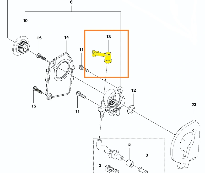 Pełni funkcję elementu łączącego lub wylotowego w pilarkach łańcuchowych Husqvarna, najczęściej w układzie odprowadzania powietrza lub oleju. Stanowi ważny element konstrukcyjny w pilarce, zapewniając szczelność i prawidłowe działanie podzespołów.