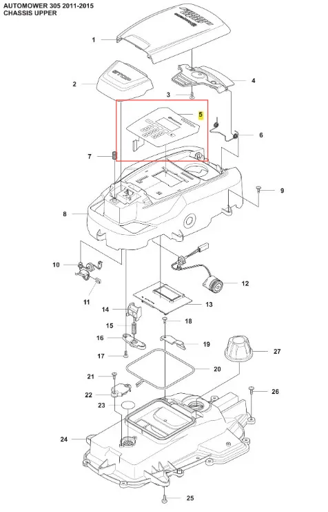 Klawiatura robota koszącego Automower 305 Husqvarna - wysokiej jakości oryginalna część producenta Husqvarna. Aktualny numer katalogowy produktu: 575779401. Szczegóły montażu dostępne w załączonym schemacie. Poniżej znajduje się lista modeli, w których ten element jest również wykorzystywany.