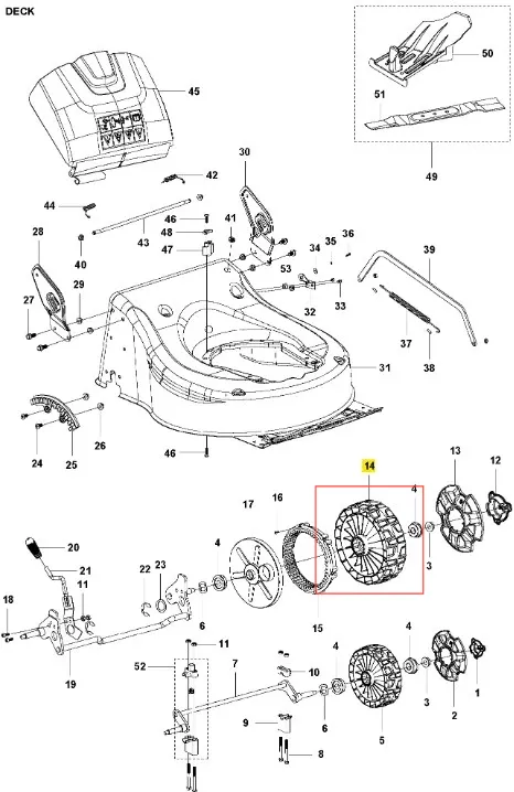 Koło kosiarki LC 141iV Husqvarna - oryginalny element firmy Husqvarna. Charakteryzuje się wysoką jakością i trwałością. Numer katalogowy: 587585501. Dokładne informacje o montażu znajdziesz w załączonym schemacie. Poniżej znajduje się lista modeli, w których ten element jest również wykorzystywany.