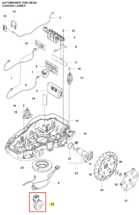 Wysokiej jakości koło robota koszącego Automower 310E NERA Husqvarna. Produkt oryginalny od Husqvarna, oznaczony numerem katalogowym: 547412801. Wszystkie szczegóły dotyczące montażu dostępne są w schemacie. Poniżej znajduje się lista modeli, w których ten element jest również wykorzystywany.
