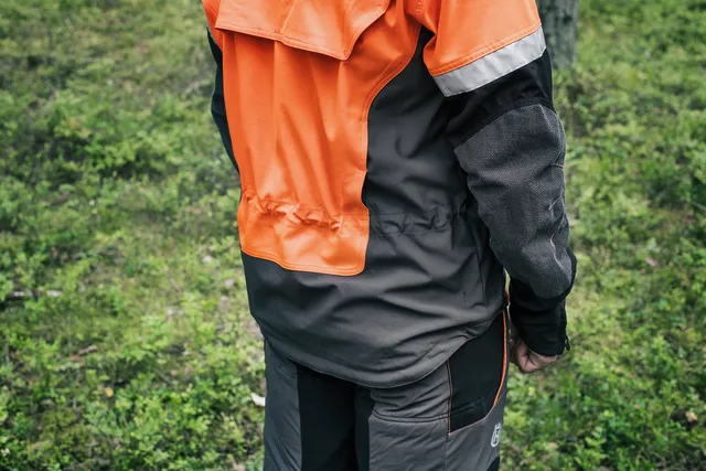 Kurtka do prac leśnych Husqvarna Technical to profesjonalna odzież zaprojektowana z myślą o intensywnym, codziennym użytkowaniu w trudnych warunkach. Wykonana z trwałych materiałów, gwarantuje niezawodność i ochronę przez cały dzień pracy. Wytrzymała tkanina Dyneema® w obszarze łokci zwiększa odporność na przetarcia, zapewniając długą żywotność produktu. Dzięki materiałowi rozciągliwemu w czterech kierunkach oraz dopasowaniu z możliwością regulacji kurtka zapewnia pełną swobodę ruchów i zmniejsza wysiłek podczas pracy. Wentylacja jest wspomagana przez chłodzącą, szybkoschnącą siateczkę w górnej części pleców oraz zamki pod pachami, które skutecznie regulują przepływ powietrza i komfort termiczny. Kurtka Husqvarna Technical jest dostępna w męskich rozmiarach od S do XXL i sprawdza się doskonale w pracy w lesie, przy pilarkach i podkaszarkach, oferując wyjątkowe połączenie trwałości, komfortu i funkcjonalności.