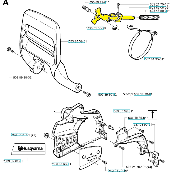 Mechanizm hamulca w pilarkach jest kluczowym elementem zapewniającym bezpieczeństwo pracy. Producent Husqvarna. Numer katalogowy: 503890802.