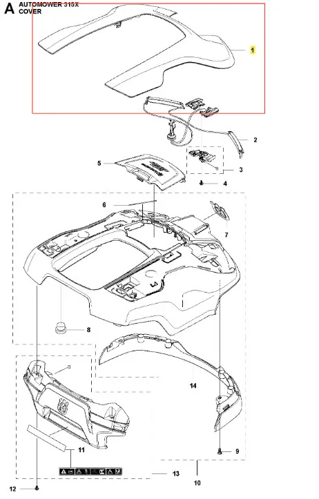 Oryginalna część Husqvarna – obudowa 315x szara robota koszącego AUTOMOWER 315X Husqvarna. Wykonana z wysokiej jakości materiałów, zapewnia niezawodność działania. Numer katalogowy: 590876901. Szczegóły dotyczące montażu zawarte są w schemacie. Aby uzyskać pełną listę modeli, do których pasuje ta część zamienna, prosimy o kontakt.