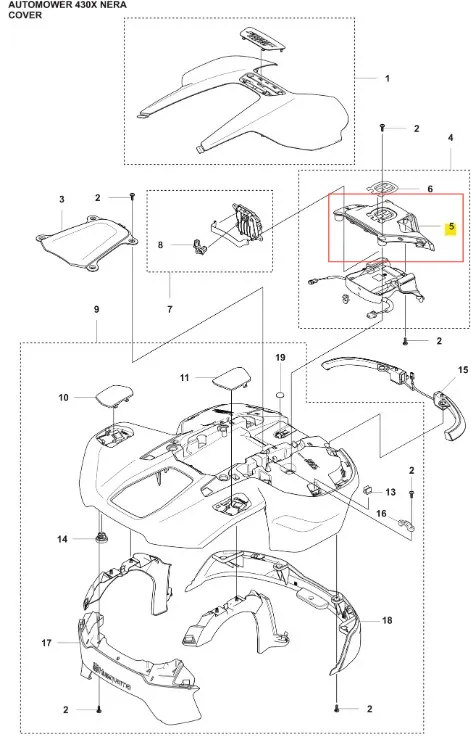 Wysokiej jakości obudowa robota koszącego Automower 430X NERA z technologią bezprzewodową Husqvarna. Produkt oryginalny od Husqvarna, oznaczony numerem katalogowym: 531257701. Wszystkie szczegóły dotyczące montażu dostępne są w schemacie. Poniżej znajduje się lista modeli, w których ten element jest również wykorzystywany.