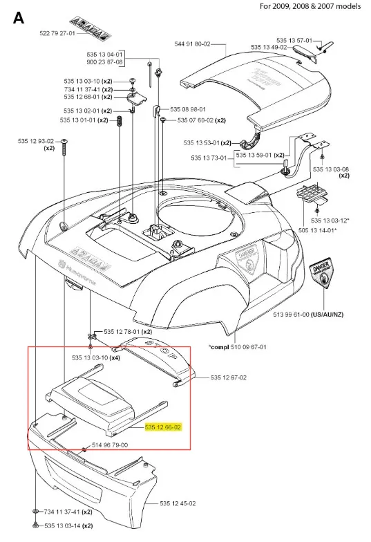 Osłona robota koszącego Automower 220 AC Husqvarna - oryginalny element firmy Husqvarna. Charakteryzuje się wysoką jakością i trwałością. Numer katalogowy: 535126602. Dokładne informacje o montażu znajdziesz w załączonym schemacie. Poniżej znajduje się lista modeli, w których ten element jest również wykorzystywany.