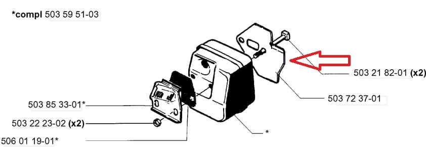 Oryginalna część występująca przy tłumiku. Producent Husqvarna. Nr oryginalny: 503723701, 5037237-01, 503 72 37-01, 503482401, 5034824-01, 503 48 24-01.