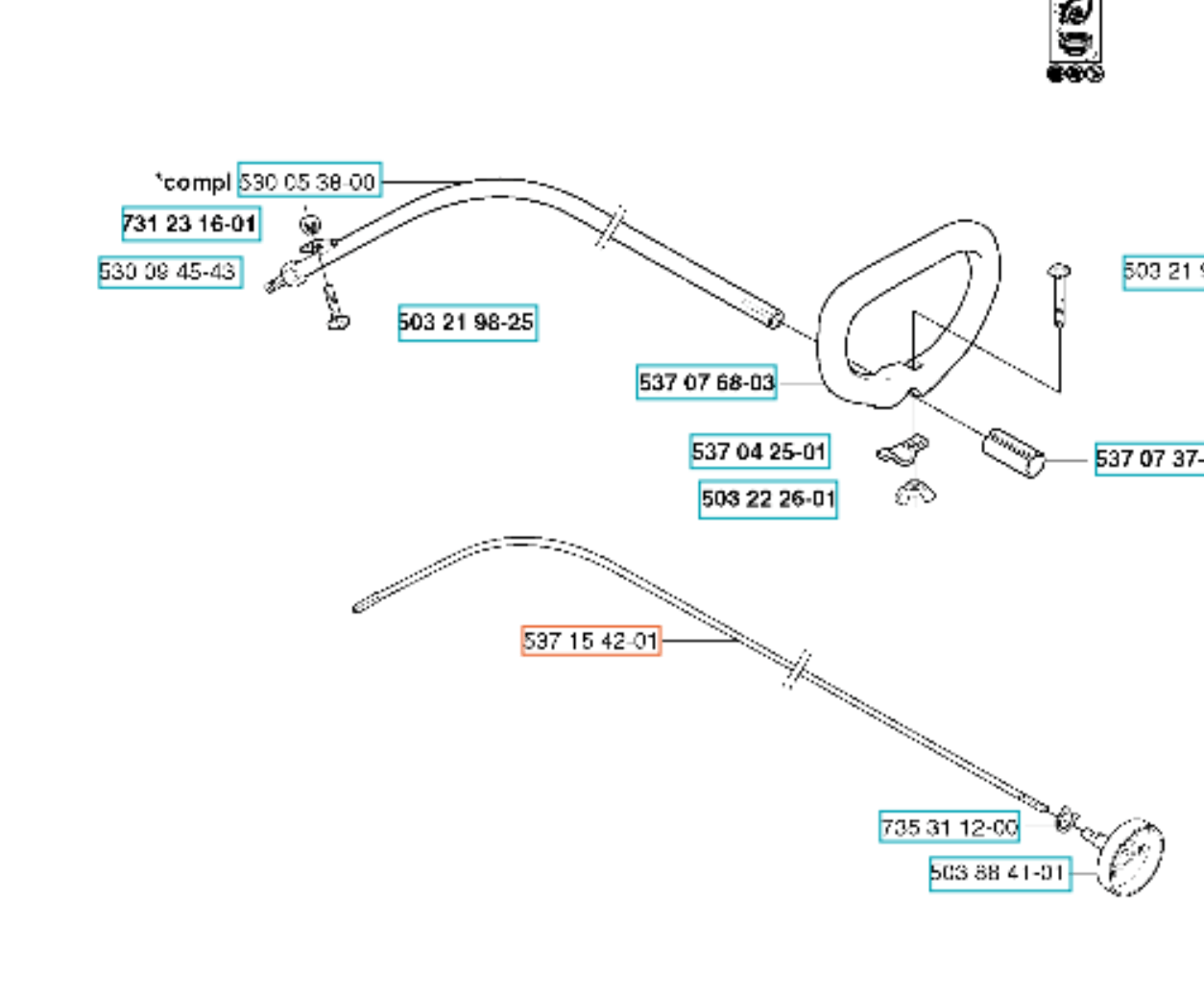 Oryginalny wał napędowy znajdujący się wewnątrz rury w kosie spalinowej. Odpowiada on za przenoszenie napędu z silnika na urządzenie tnące. Produkt występuje pod numerem katalogowym: 544039901. Producent Husqvarna. Dokładne umiejscowienie na załączonym schemacie.