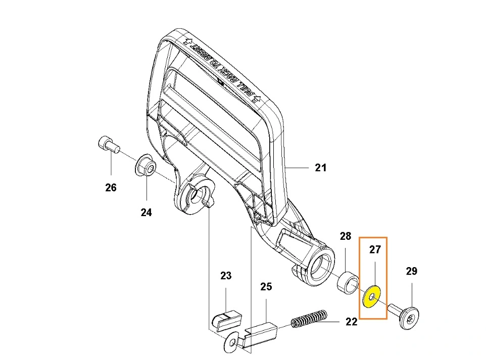 Podkładka, przeznaczona do pilarek spalinowych Huqvarna oraz Jonsered. Produkt występuje pod oryginalnym numerem katalogowym: 513249401. Producent: Husqvarna. Część znajduje się przy dźwigni hamulca - dokładne umiejscowienie widoczne jest na załączonym schemacie.