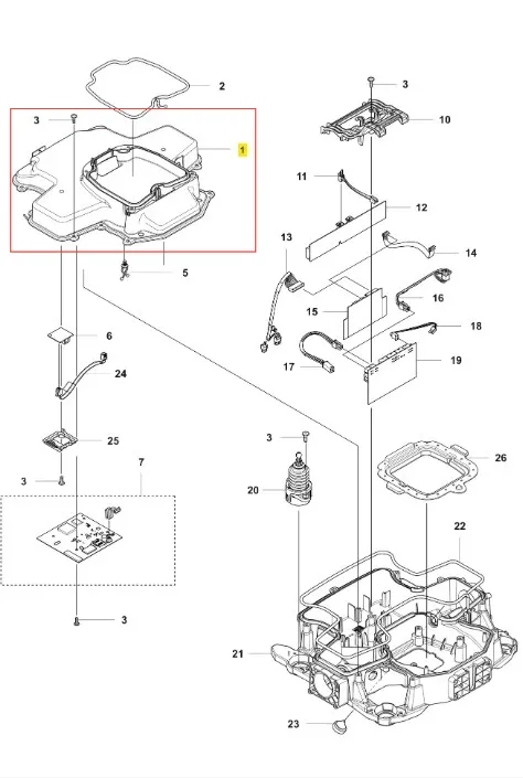 Podstawa robota koszącego Automower 535 AWD Husqvarna - wysokiej jakości oryginalna część producenta Husqvarna. Aktualny numer katalogowy produktu: 592743401. Szczegóły montażu dostępne w załączonym schemacie. Poniżej znajduje się lista modeli, w których ten element jest również wykorzystywany.