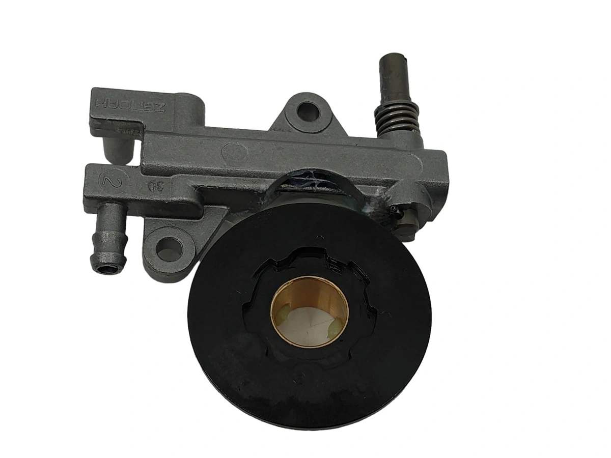 Pompa olejowa odpowiada za precyzyjne dozowanie oleju do łańcucha i prowadnicy - co jest najważniejsze dla ich trwałości oraz bezpiecznej, efektywnej pracy. Pompa jest wykonana z wytrzymałych materiałów, odpornych na olej, wysokie obroty i intensywną eksploatację. Jej konstrukcja zapewnia stabilny przepływ oleju nawet przy pracy pod dużym obciążeniem i zmiennych warunkach, co zabezpiecza łańcuch, prowadnicę i bęben przed nadmiernym ścieraniem, przegrzewaniem czy uszkodzeniem.