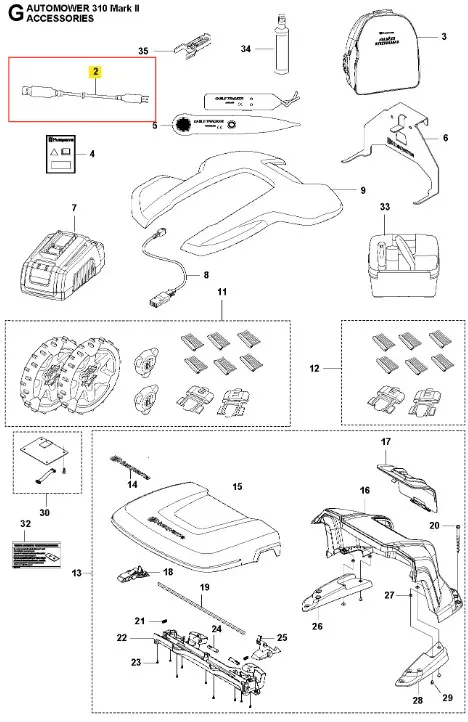 Przewód robota koszącego Automower 310 Mark II Husqvarna - oryginalna część producenta, wykonana z wysokiej jakości materiałów. Aktualny numer katalogowy: 577518102. Instrukcje montażowe znajdują się w schemacie. Poniżej znajduje się lista modeli, w których ten element jest również wykorzystywany.