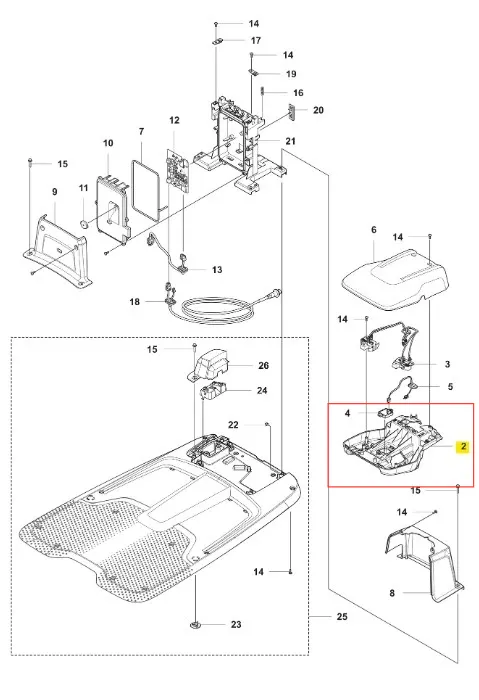 Rama robota koszącego Automower 560 EPOS Husqvarna - wysokiej jakości oryginalna część producenta Husqvarna. Aktualny numer katalogowy produktu: 546869301. Szczegóły montażu dostępne w załączonym schemacie. Poniżej znajduje się lista modeli, w których ten element jest również wykorzystywany.