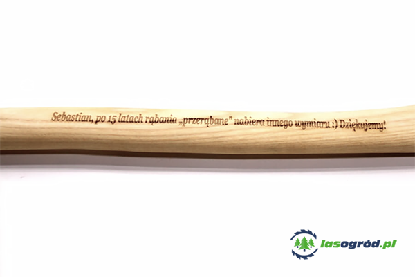 Siekiera ciesielska Krumpholz z oryginalnym wygrawerowanym na trzonku dowolnie wybranym napisem. Czas oczekiwania 10 dni. Treść grawera proszę dopisywać w polu "Uwagi" podczas składania zamówienia. Idealny prezent na święta, na mikołajki lub inną okoliczność. Siekiera dedykowana do robót ciesielskich, okrzesywania kłód i innych prac związanych z obróbką drewna. Posiada prostą krawędź tnącą, służącą do strugania i rzeźbienia. Głowica wykuta ręcznie ze stali najwyższej jakości skonstruowana jest tak, by dłoń znajdowała się jak najbliżej krawędzi tnącej, co daje maksymalną kontrolę nad narzędziem. Posiada lekki, a zarazem bardzo wytrzymały trzonek wykonany z jesionu. Ponadto na górze obucha znajduje się zaczep dzięki któremu możliwe jest wyciąganie np. gwoździ. To sprawia, że siekiera ta doskonal sprawdzi się do prac dekarskich i ciesielskich.