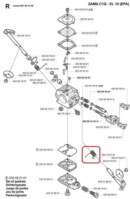 Sprężyna powrotna do gaźnika ZAMA C1Q-EL10 pilarki Husqvarna 51