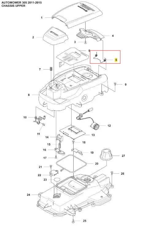 Sprężyna robota koszącego Automower 305 Husqvarna - wysokiej jakości oryginalna część producenta Husqvarna. Aktualny numer katalogowy produktu: 576242101. Szczegóły montażu dostępne w załączonym schemacie. Poniżej znajduje się lista modeli, w których ten element jest również wykorzystywany.