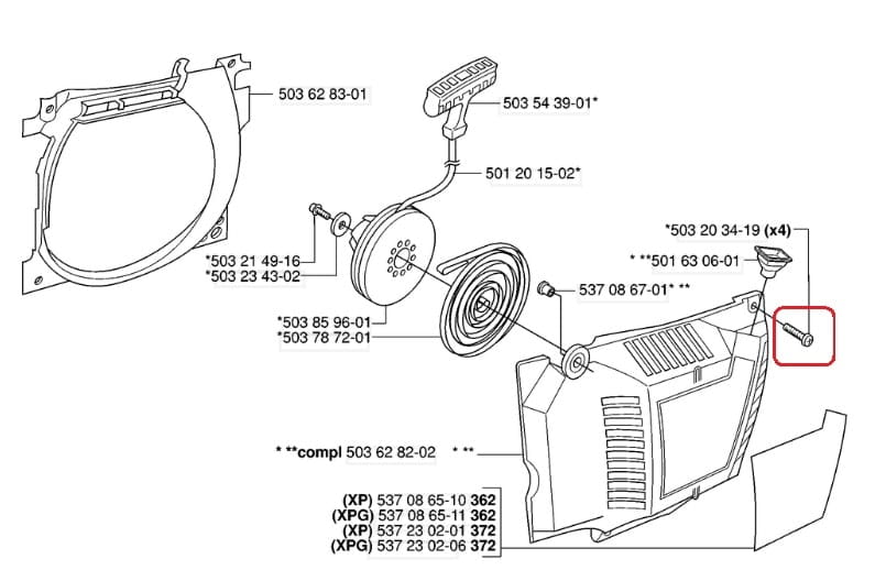 Śruba umiejscowiona przy rozruszniku pasuje do pilarek spalinowych: