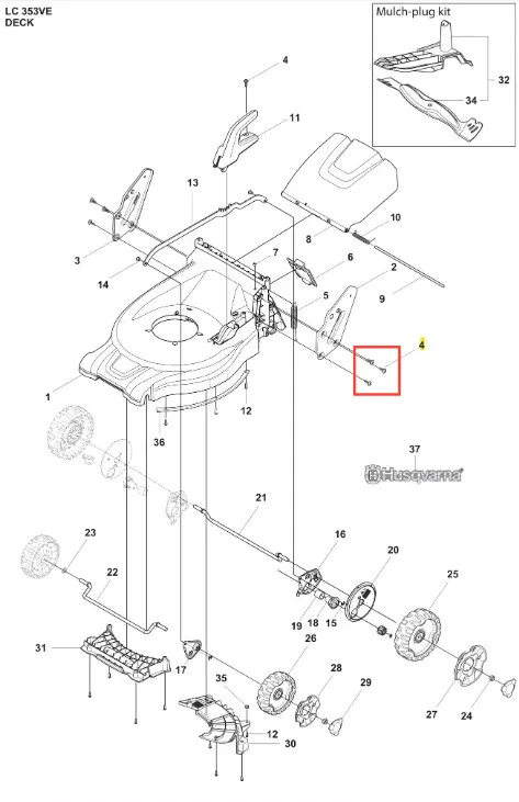 Wysokiej jakości śruba kosiarki LC 353VE Husqvarna. Produkt oryginalny od Husqvarna, oznaczony numerem katalogowym: 578175802. Wszystkie szczegóły dotyczące montażu dostępne są w schemacie. Poniżej znajduje się lista modeli, w których ten element jest również wykorzystywany.
