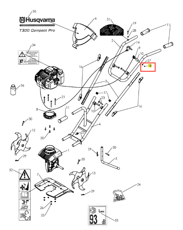 Śruba kultywatora T300RS Compact Pro Husqvarna - oryginalny element firmy Husqvarna. Charakteryzuje się wysoką jakością i trwałością. Numer katalogowy: 501991401. Dokładne informacje o montażu znajdziesz w załączonym schemacie. Poniżej znajduje się lista modeli, w których ten element jest również wykorzystywany.
