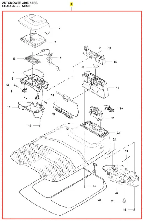 Stacja ładująca robota koszącego Automower 310E NERA Husqvarna - oryginalna część producenta, wykonana z wysokiej jakości materiałów. Aktualny numer katalogowy: 531422302. Instrukcje montażowe znajdują się w schemacie. Poniżej znajduje się lista modeli, w których ten element jest również wykorzystywany.