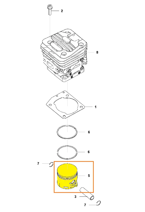 Oryginalny tłok marki Husqvarna, zaprojektowany do pracy w silnikach dwusuwowych pilarek łańcuchowych. Odpowiada za poprawne sprężanie mieszanki paliwowo-powietrznej, co bezpośrednio wpływa na moc, dynamikę i trwałość silnika. Tłok wykonany jest z lekkiego stopu aluminium o podwyższonej odporności termicznej i mechanicznej.