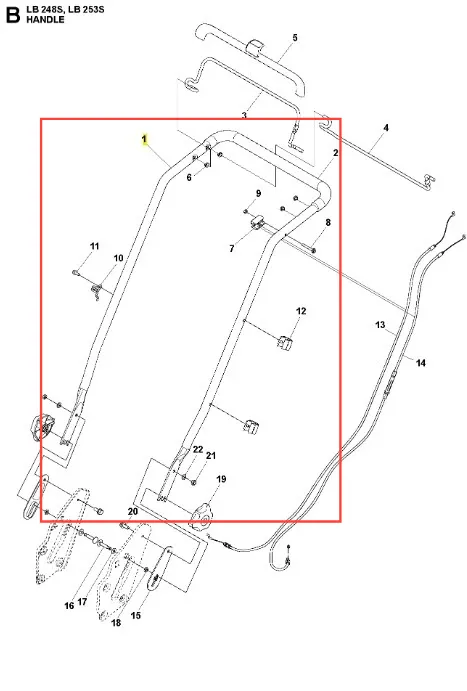 Uchwyt kosiarki LB 248S Husqvarna - oryginalny element firmy Husqvarna. Charakteryzuje się wysoką jakością i trwałością. Numer katalogowy: 582818102. Dokładne informacje o montażu znajdziesz w załączonym schemacie. Poniżej znajduje się lista modeli, w których ten element jest również wykorzystywany.