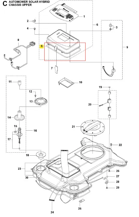 Oryginalna część Husqvarna – uszczelka wyświetlacza robota koszącego Automower Solar Hybrid Husqvarna. Wykonana z wysokiej jakości materiałów, zapewnia niezawodność działania. Numer katalogowy: 574874702. Szczegóły dotyczące montażu zawarte są w schemacie. Poniżej znajduje się lista modeli, w których ten element jest również wykorzystywany.