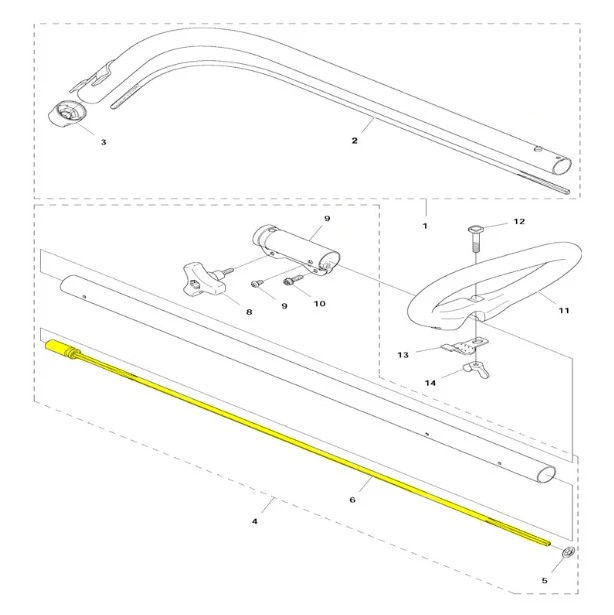 Wał napędowy podkaszarki 122C Husqvarna - wysokiej jakości oryginalna część producenta Husqvarna. Aktualny numer katalogowy produktu: 577380801. Szczegóły montażu dostępne w załączonym schemacie. Poniżej znajduje się lista modeli, w których ten element jest również wykorzystywany.