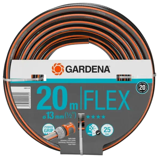 Gardena Comfort wąż FLEX z profilem Power Grip to nowoczesne rozwiązanie, które zapewnia wygodę i niezawodność w codziennym użytkowaniu ogrodowym. Produkt jest sprzedawany na metry, dzięki czemu możesz idealnie dopasować długość węża do swoich potrzeb. Innowacyjny profil Power Grip gwarantuje pewne i szczelne połączenie węża ze złączką – dzięki zazębianiu się elementów masz pewność, że wąż nie rozłączy się pod wpływem ciśnienia, a podlewanie będzie przebiegać bez problemów. Dodatkowym atutem profilu Power Grip jest łatwe zwijanie węża oraz jego gładki poślizg po powierzchniach, co ułatwia poruszanie się po ogrodzie. Wąż został wyposażony w spiralny oplot, który sprawia, że jest odporny na ciśnienie robocze i odkształcenia, zachowując jednocześnie elastyczność. Dzięki temu wąż nie plącze się, nie supła i jest niezwykle wygodny w obsłudze, nawet na dużych powierzchniach. Jego grube ścianki zapewniają maksymalną trwałość i wytrzymałość, a odporność na promieniowanie UV gwarantuje, że nie ulegnie uszkodzeniu nawet przy intensywnym nasłonecznieniu. Wąż wytrzymuje ciśnienie rozrywające do 25 bar, co czyni go idealnym do intensywnego, wieloletniego użytkowania. Ponadto jest bezpieczny dla środowiska, gdyż nie zawiera toksycznych ftalanów ani metali ciężkich. Współpracując z Original Gardena System, wąż FLEX jest kompatybilny z szeroką gamą narzędzi i akcesoriów nawadniających, co pozwala na łatwe dopasowanie go do każdej konfiguracji w ogrodzie. Na ten wysokiej jakości produkt Gardena oferuje 20-letnią gwarancję, co jest świadectwem jego niezawodności i trwałości. Dzięki Gardena Comfort wąż FLEX masz pewność, że podlewanie ogrodu będzie proste, wygodne i bezproblemowe, niezależnie od rozmiaru Twojego terenu.