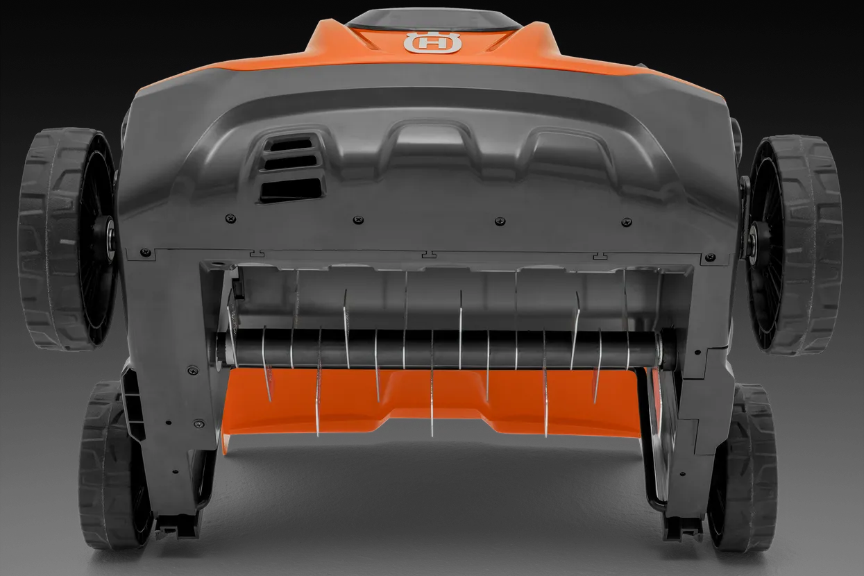 Wałki robocze 2-w-1 – do wertykulacji i zgrabiania mchu, łatwa wymiana w zależności od zadania.
