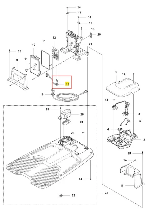 Wiązka przewodów robota koszącego Automower 560 EPOS Husqvarna - oryginalna część producenta, wykonana z wysokiej jakości materiałów. Aktualny numer katalogowy: 546913901. Instrukcje montażowe znajdują się w schemacie. Poniżej znajduje się lista modeli, w których ten element jest również wykorzystywany.