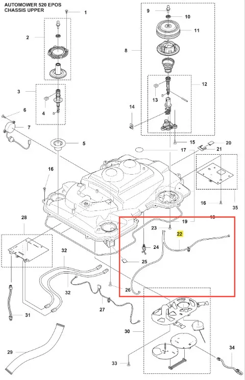 Wiązka robota koszącego Automower 520 EPOS Husqvarna - wysokiej jakości oryginalna część producenta Husqvarna. Aktualny numer katalogowy produktu: 579705902. Szczegóły montażu dostępne w załączonym schemacie. Poniżej znajduje się lista modeli, w których ten element jest również wykorzystywany.