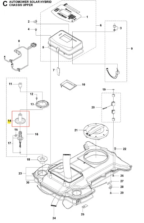 Wkładka robota koszącego Automower Solar Hybrid Husqvarna - wysokiej jakości oryginalna część producenta Husqvarna. Aktualny numer katalogowy produktu: 577525801. Szczegóły montażu dostępne w załączonym schemacie. Poniżej znajduje się lista modeli, w których ten element jest również wykorzystywany.