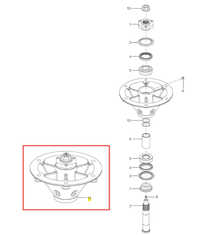 Wrzeciono kosiarki o zerowym promieniu skrętu Z560X Husqvarna - wysokiej jakości oryginalna część producenta Husqvarna. Aktualny numer katalogowy produktu: 580943306. Szczegóły montażu dostępne w załączonym schemacie. Poniżej znajduje się lista modeli, w których ten element jest również wykorzystywany.